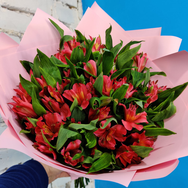 Монобукет из альстромерий в красно-розовых тонах поможет поздравить с любым праздником и подарить душевное тепло.