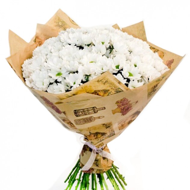 Состав: Хризантема кустовая 19шт., упаковка крафт, лента.
