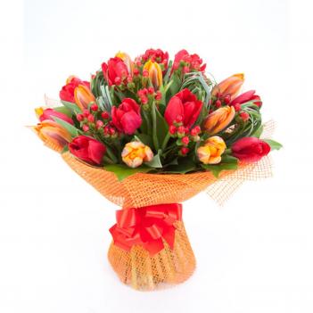 Роза кустовая 51шт., Пакет крафт с аквабоксом