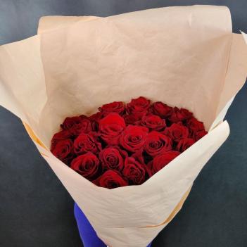 Букет из нежных роз и зелени, сообщает о чувстве благодарности к получателю подарка! Состав Самшит - 3 шт. Роза одноголовая - 15 шт. Лента - 1 шт. Пленка - 2 шт.