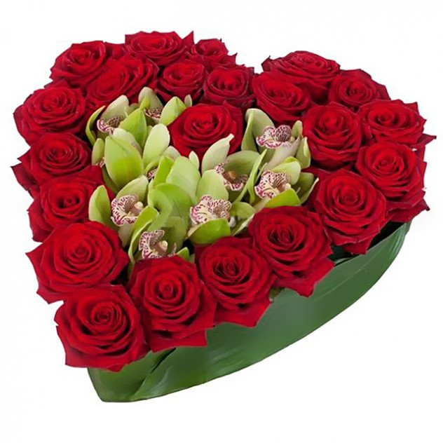 Состав: Красная роза 22шт. орхидея цимбидиум аспидистра, упаковка.